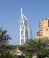Wahrzeichen Dubais, das Hotel Burj Al Arab und bettet sich in einem der