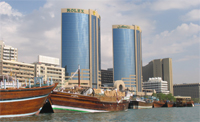 verträumt die Stunden am geschäftigen Dubai Creek beim Beobachten der Dhows, der traditionellen Handelsschiffe.